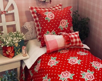Buy Springtime 1 6th Doll Bed Bedding Set Red Floral Ruffled Online In India Etsy